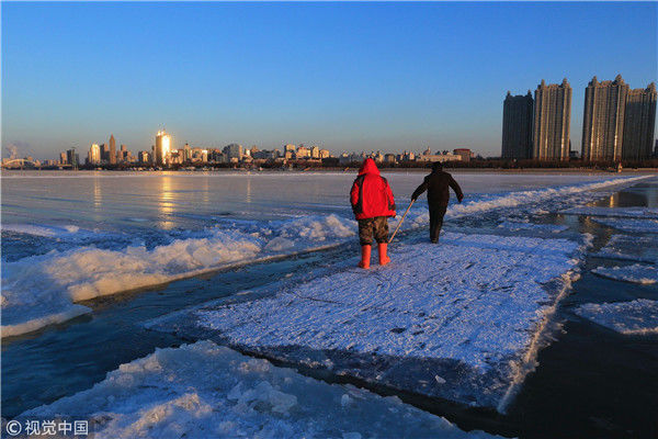 寒冬采冰人:起早貪黑 “淘金”冰雪