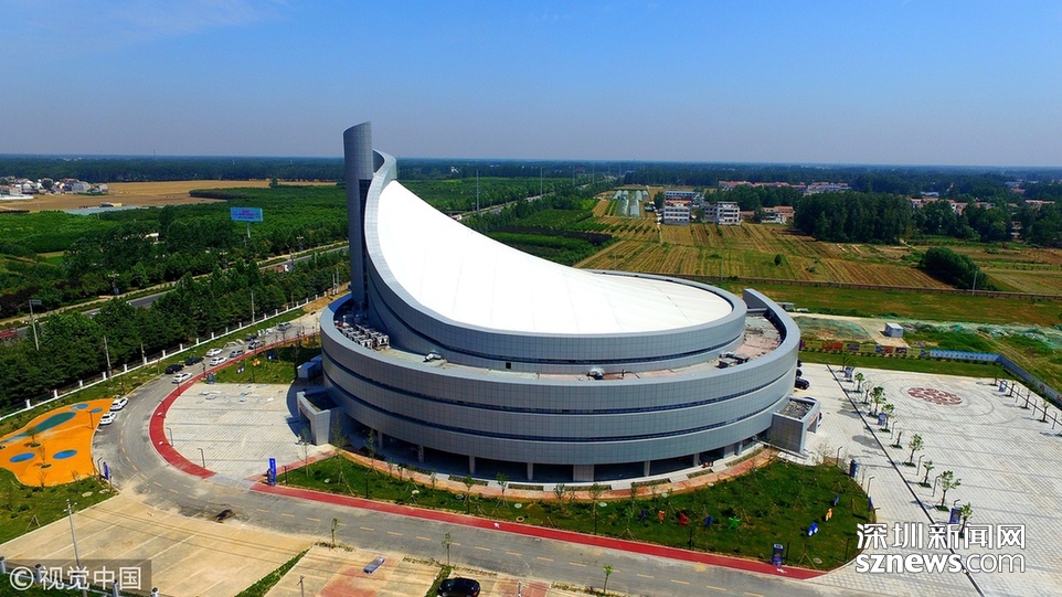 該體育館建筑外觀為圓形,分四層,有上下兩部分組成,市民稱酷似一個(gè)石磨盤。