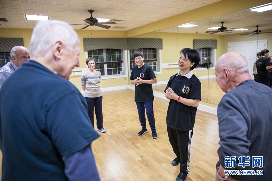 陳思坦的夫人林旭在位于美國紐約長島的一所社區(qū)老年活動中心指導老人練習太極(11月20日攝)。這里是陳思坦夫婦開設的一個公益教學項目。11月的紐約已進入初冬,位于美國紐約長島的思坦太極武術中心依然一片紅火景象,學員們從5歲的孩童到80多歲的老人,操練著太極拳、太極劍、長拳等武術招式。這里的主人陳思坦、林旭夫婦,也從早忙到晚,精心指導每一位學員的一招一式。6歲習武,22歲成為中國全國冠軍,26歲獲得首個世界冠軍……直到30歲退役,陳思坦在運動員生涯中曾獲得過32次國內外各類武術大賽冠軍。36歲那年,懷著以太極拳和中國武術為媒介向世界推廣中國文化的夢想,陳思坦到美國紐約尋找新的舞臺。經過十多年的艱苦打拼,陳思坦夫婦目前在紐約長島、法拉盛和曼哈頓都開設了長期的課程,思坦太極注冊在編的各個年齡段的學員近千人,有些“高徒”現(xiàn)在自己也開班授課,將太極推向更多地方。陳思坦夫婦現(xiàn)在思考更多的是如何將太極和武術推廣給更多的美國人,并讓他們理解其中蘊含的平衡、和諧的中國文化理念。他們創(chuàng)辦了紐約太極健身氣功活動日,在各類學校和社區(qū)開設太極或者武術課程,并利用美國的亞太裔文化月和多元文化節(jié)舉行武術和太極表演和體驗課程,讓更多美國人親眼看到、親身體會中國武術的魅力。從2011年起,他們還參與創(chuàng)辦了紐約太極大賽,如今已舉行九屆,吸引了美國、加拿大和中國國內的隊伍參賽,影響力逐漸擴大。新華社記者王迎攝
