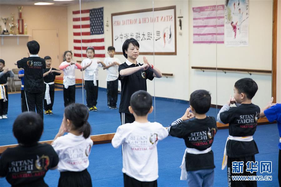 陳思坦的夫人林旭在位于美國紐約長島的思坦太極武術(shù)中心指導(dǎo)小學(xué)員練習(xí)武術(shù)(11月20日攝)。11月的紐約已進(jìn)入初冬,位于美國紐約長島的思坦太極武術(shù)中心依然一片紅火景象,學(xué)員們從5歲的孩童到80多歲的老人,操練著太極拳、太極劍、長拳等武術(shù)招式。這里的主人陳思坦、林旭夫婦,也從早忙到晚,精心指導(dǎo)每一位學(xué)員的一招一式。6歲習(xí)武,22歲成為中國全國冠軍,26歲獲得首個(gè)世界冠軍……直到30歲退役,陳思坦在運(yùn)動(dòng)員生涯中曾獲得過32次國內(nèi)外各類武術(shù)大賽冠軍。36歲那年,懷著以太極拳和中國武術(shù)為媒介向世界推廣中國文化的夢(mèng)想,陳思坦到美國紐約尋找新的舞臺(tái)。經(jīng)過十多年的艱苦打拼,陳思坦夫婦目前在紐約長島、法拉盛和曼哈頓都開設(shè)了長期的課程,思坦太極注冊(cè)在編的各個(gè)年齡段的學(xué)員近千人,有些“高徒”現(xiàn)在自己也開班授課,將太極推向更多地方。陳思坦夫婦現(xiàn)在思考更多的是如何將太極和武術(shù)推廣給更多的美國人,并讓他們理解其中蘊(yùn)含的平衡、和諧的中國文化理念。他們創(chuàng)辦了紐約太極健身氣功活動(dòng)日,在各類學(xué)校和社區(qū)開設(shè)太極或者武術(shù)課程,并利用美國的亞太裔文化月和多元文化節(jié)舉行武術(shù)和太極表演和體驗(yàn)課程,讓更多美國人親眼看到、親身體會(huì)中國武術(shù)的魅力。從2011年起,他們還參與創(chuàng)辦了紐約太極大賽,如今已舉行九屆,吸引了美國、加拿大和中國國內(nèi)的隊(duì)伍參賽,影響力逐漸擴(kuò)大。新華社記者王迎攝