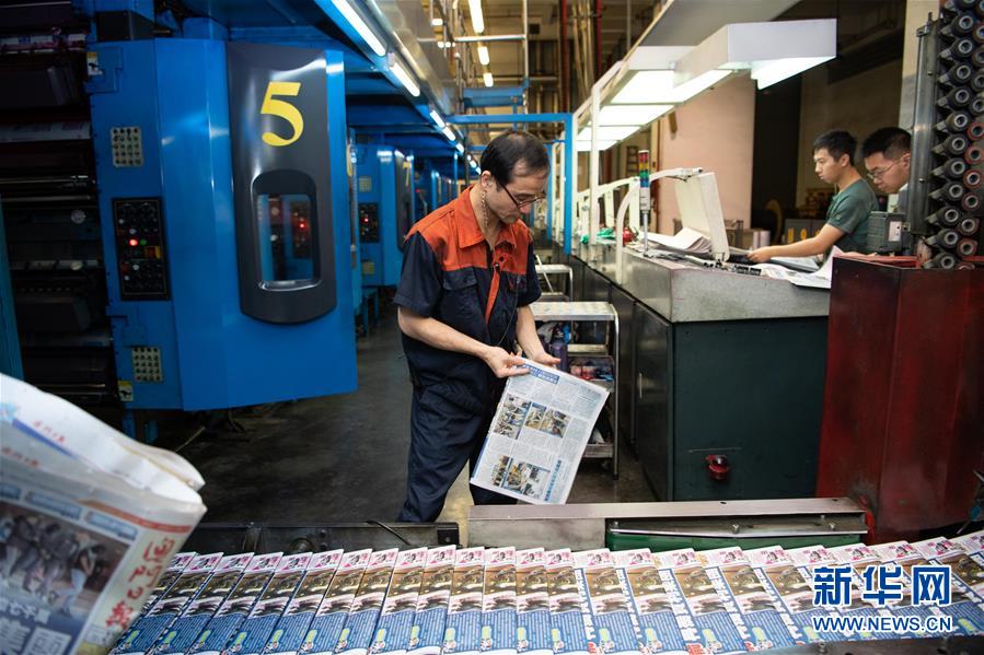 11月27日,澳門日報印刷課副主任袁錦財在車間內(nèi),他已經(jīng)工作了35年,主要負(fù)責(zé)抽樣質(zhì)檢當(dāng)日報紙。 新華社記者 張金加 攝