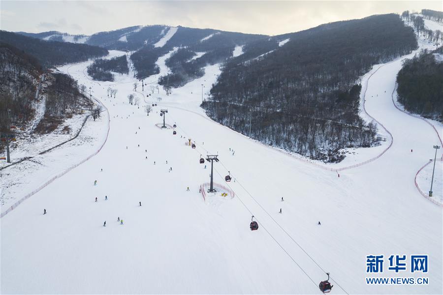 空中俯瞰吉林市萬(wàn)科松花湖度假區(qū)滑雪場(chǎng)(12月13日無(wú)人機(jī)拍攝)。新華社記者 張豪夫 攝