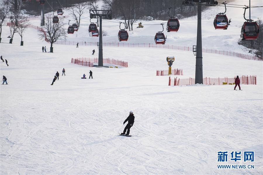 12月13日,滑雪愛(ài)好者在吉林市萬(wàn)科松花湖度假區(qū)滑雪。