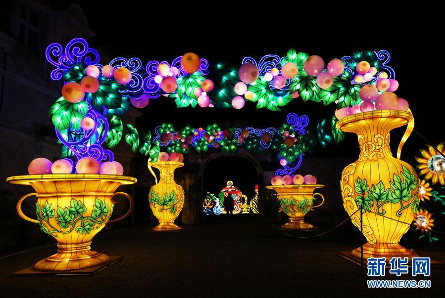 這是12月15日在法國(guó)謝爾河畔塞勒市的塞納古堡拍攝的中國(guó)彩燈。 新華社記者 高靜 攝