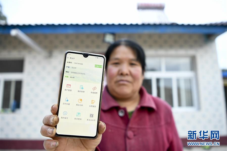在寧夏固原市彭陽(yáng)縣白陽(yáng)鎮(zhèn)白岔村,村民展示可以“手機(jī)買水”的界面(10月11日攝)。 新華社記者 馮開(kāi)華 攝
