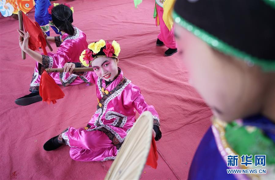 12月19日,河北省灤州市小閆營小學(xué)學(xué)生在排練地秧歌。新華社記者 牟宇 攝
