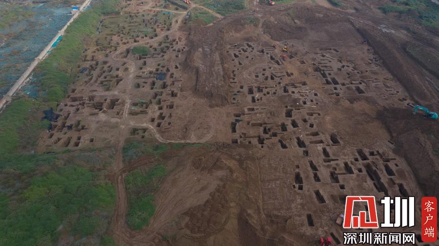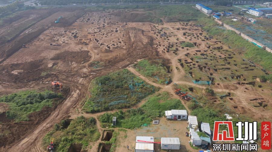 西安宜家工地挖出古墓空中俯瞰數(shù)百墓坑密密麻麻