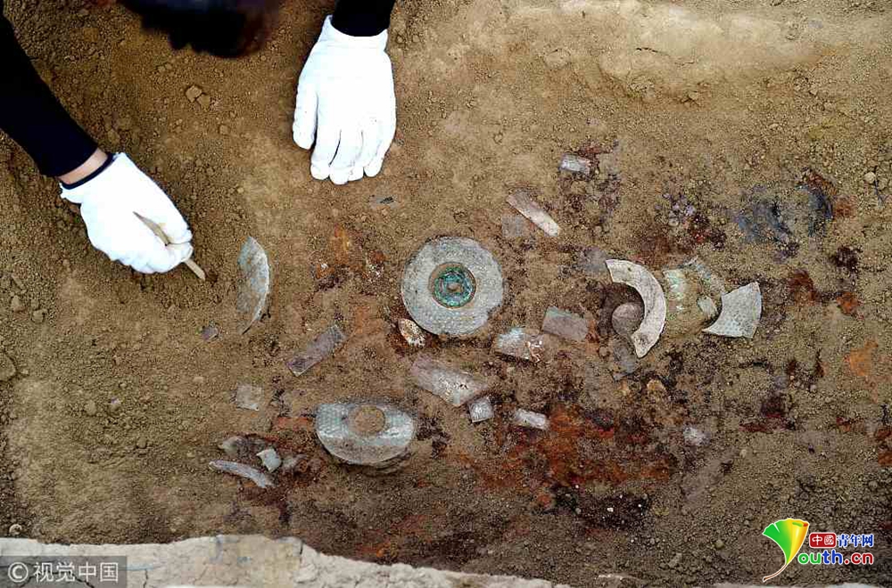 這是發(fā)掘的隨葬品(11月15日攝)。