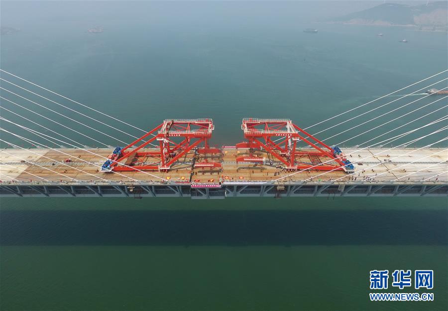 福平鐵路平潭海峽公鐵兩用大橋元洪航道橋主橋正在合龍(6月5日攝)。新華社記者林善傳攝
