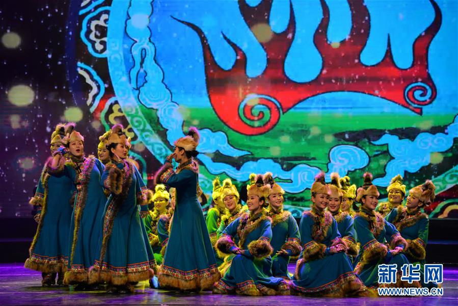 12月22日,演員在表演舞蹈《達斡爾民間呼號表演》。 新華社記者 徐欽 攝