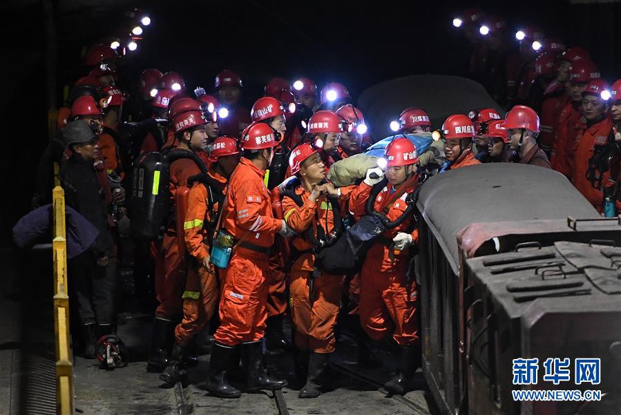 12月18日,救援人員轉(zhuǎn)運(yùn)安全升井的被困人員。 當(dāng)日7時(shí)56分,經(jīng)過80多個(gè)小時(shí)的緊張救援,發(fā)生透水事故的川煤集團(tuán)杉木樹煤礦13名被困人員全部安全升井。 新華社記者 薛玉斌 攝