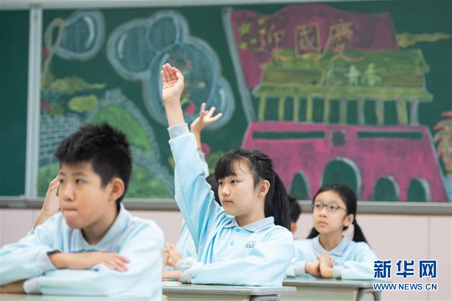 11月25日,喻彥茜(中)在課堂上舉手回答老師提問(wèn)。