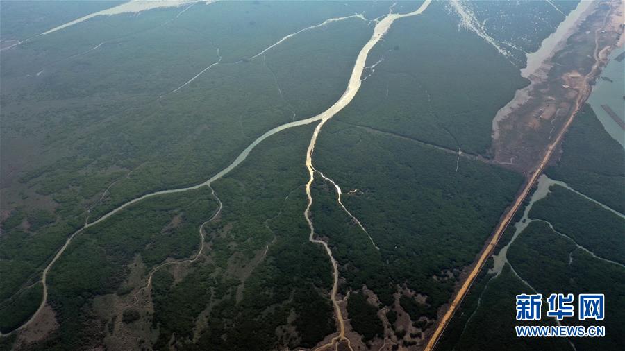 12月21日無人機拍攝的廣西合浦縣黨江鎮(zhèn)更螺圍出??谝痪?。冬日,廣西廉州灣海域風光別致。新華社記者張愛林攝
