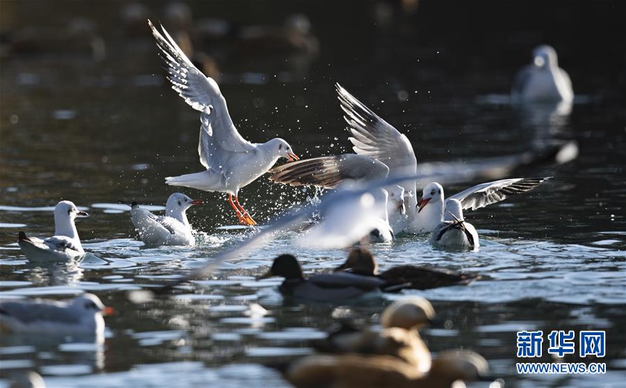 11月21日,候鳥在拉薩龍王潭公園水中嬉戲。時下,斑頭雁、紅嘴鷗等不少候鳥陸續(xù)飛抵拉薩河谷、雅魯藏布江沿岸等地避寒。新華社記者普布扎西攝
