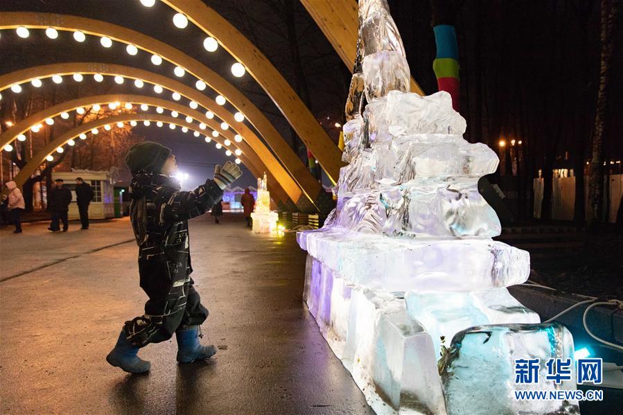 12月24日,在俄羅斯首都莫斯科,小朋友參觀冰雕藝術(shù)展。 哈爾濱冰雕藝術(shù)展24日在莫斯科開幕,現(xiàn)場展出了哈爾濱大劇院、防洪紀念塔以及莫斯科紅場建筑群等惟妙惟肖的冰雕作品,吸引眾多游客駐足拍照。 參加本次冰雕藝術(shù)展的十名冰雕師提前抵達莫斯科,以新中國成立70周年、中俄建交70周年、“一帶一路”倡議等為主題,為莫斯科民眾奉上了精美的新年禮物。 新華社記者 白雪騏 攝