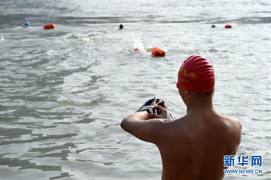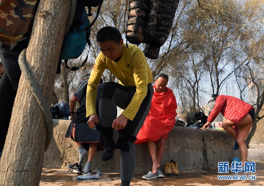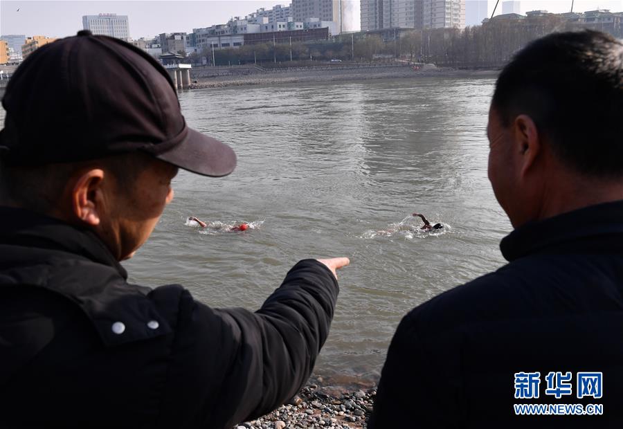 12月18日,冬泳愛(ài)好者準(zhǔn)備進(jìn)入黃河開(kāi)始冬泳。新華社記者馬寧攝