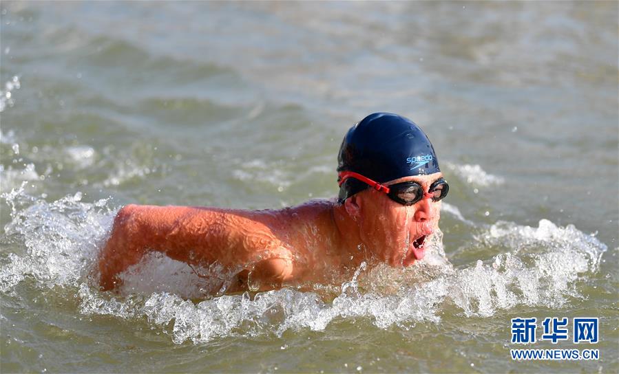 12月20日,83歲的冬泳愛(ài)好者周漢英在黃河冬泳。新華社記者陶希夷攝