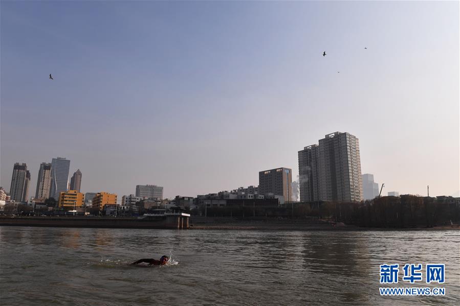 12月20日,冬泳愛(ài)好者在黃河冬泳。新華社記者賀長(zhǎng)山攝