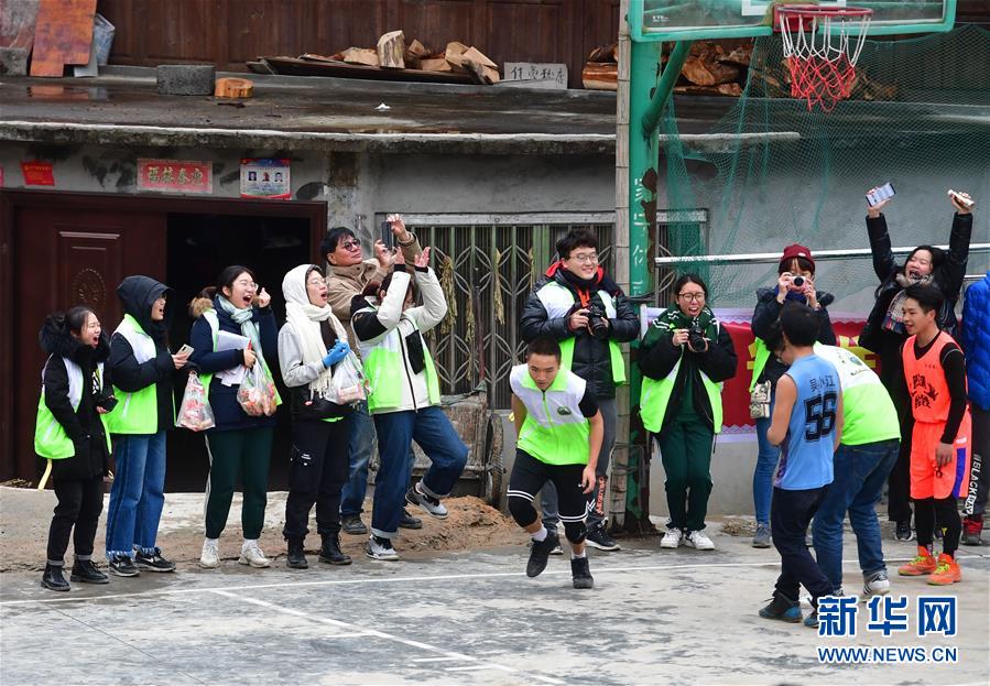 12月26日,澳門青年藝能志愿工作會(huì)的義教老師們在烏英苗寨觀看籃球比賽。 新華社記者 黃孝邦 攝