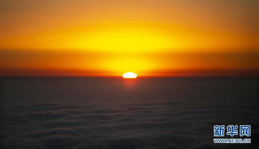 這是12月29日在四川省峨眉山金頂拍攝的日出。時值冬日,峨眉山銀裝素裹、宛如仙境。新華社記者李夢馨攝
