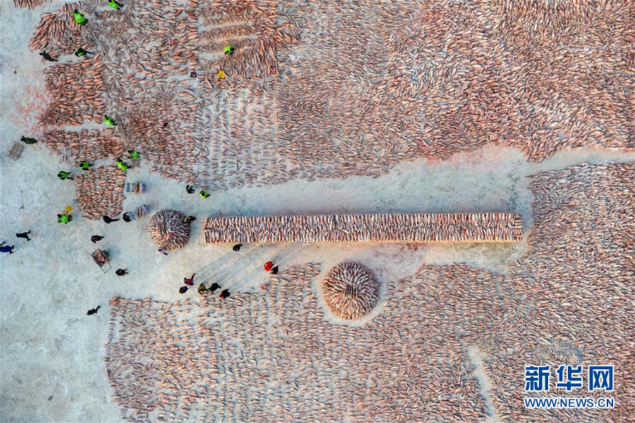 12月27日,在查干湖漁場超市,消費者選購查干湖魚(無人機拍攝)。新華社記者張楠攝