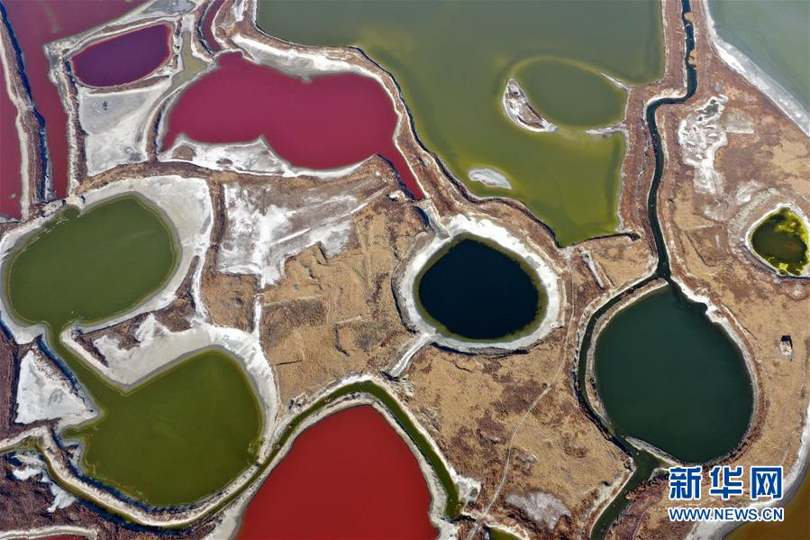 12月27日無人機拍攝的山西運城鹽湖。 冬日時節(jié),從空中俯瞰位于山西省運城市的鹽湖,景色如畫。 新華社記者曹陽攝