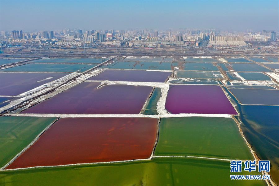 12月27日無人機拍攝的山西運城鹽湖。 冬日時節(jié),從空中俯瞰位于山西省運城市的鹽湖,景色如畫。 新華社記者曹陽攝