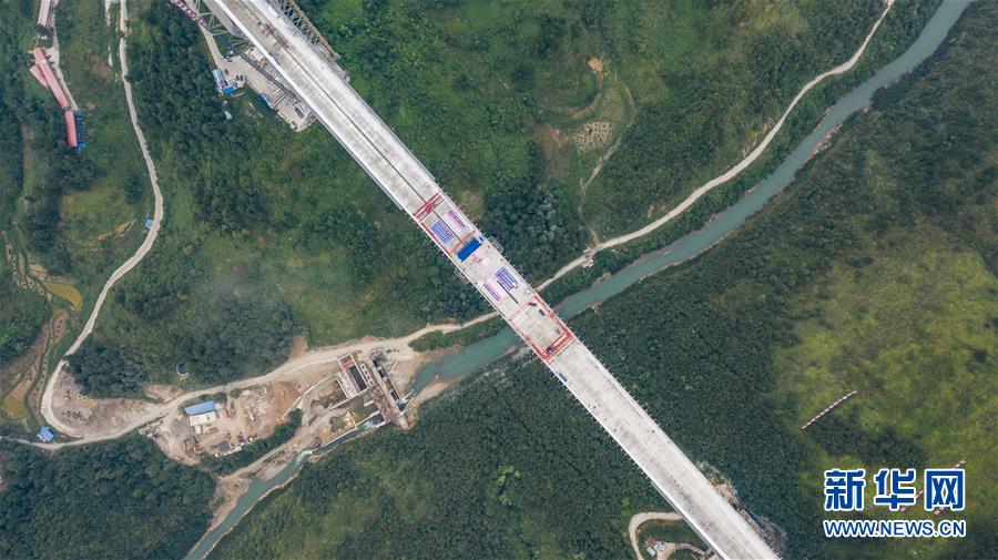 這是9月26日無人機拍攝的成功合龍的平塘特大橋。新華社記者陶亮攝