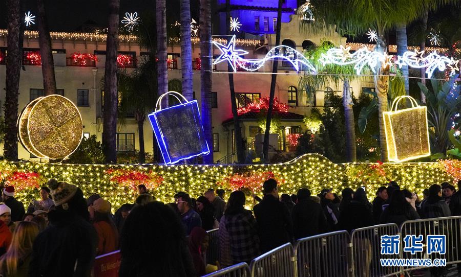 12月29日,人們在美國加利福尼亞州里弗賽德燈光節(jié)上欣賞彩燈。 新華社記者李穎攝