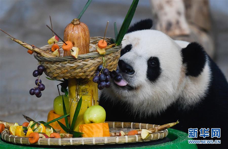 12月31日,大熊貓“貢貢”在吃葡萄。 新華社記者 楊冠宇 攝