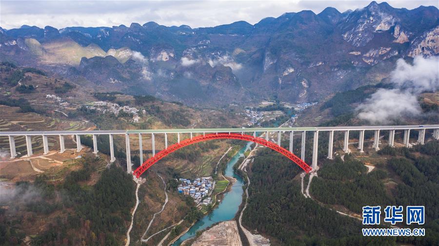 這是中冶集團承建的紫望高速火花特大橋(無人機照片,1月1日攝)。新華社記者陶亮攝
