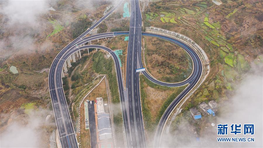 這是紫望高速紫云南互通(無人機照片,1月1日攝)。2019年12月31日23時59分,貴州紫云至望謨高速公路、平塘至羅甸高速公路全線通車運營,紫云至望謨行車時間由2個半小時縮短為50分鐘、平塘至羅甸行車時間由2個半小時縮短至1小時。紫望高速項目起于紫云縣遼菁村,終于望謨縣平洞大道。全線總長74公里,總投資104.81億元。平羅高速全長93.478公里,項目起點位于平塘縣東北面的沖頭,于納散(地名)設置樞紐互通連接銀川至百色高速公路惠水至羅甸段。這兩條高速公路的通車運營對改善沿線居民生產(chǎn)生活條件、帶動旅游發(fā)展、助力當?shù)孛撠毠杂兄匾饬x。新華社記者陶亮攝