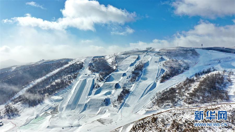 圖為崇禮云頂冬奧賽場(chǎng)的雪道(無(wú)人機(jī)拍攝,攝于12月11日)。新華社記者楊世堯攝