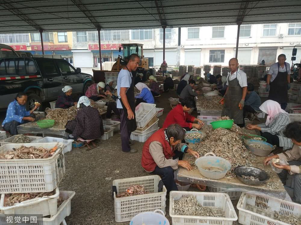 海產(chǎn)豐收的季節(jié)還催生了當(dāng)?shù)鬲毺氐墓しN,這就是分揀工,不少農(nóng)村人在這里靠著分揀海產(chǎn)日賺幾十元。