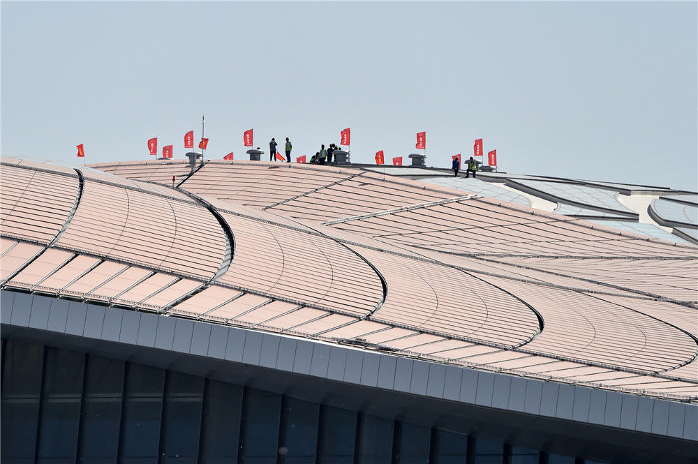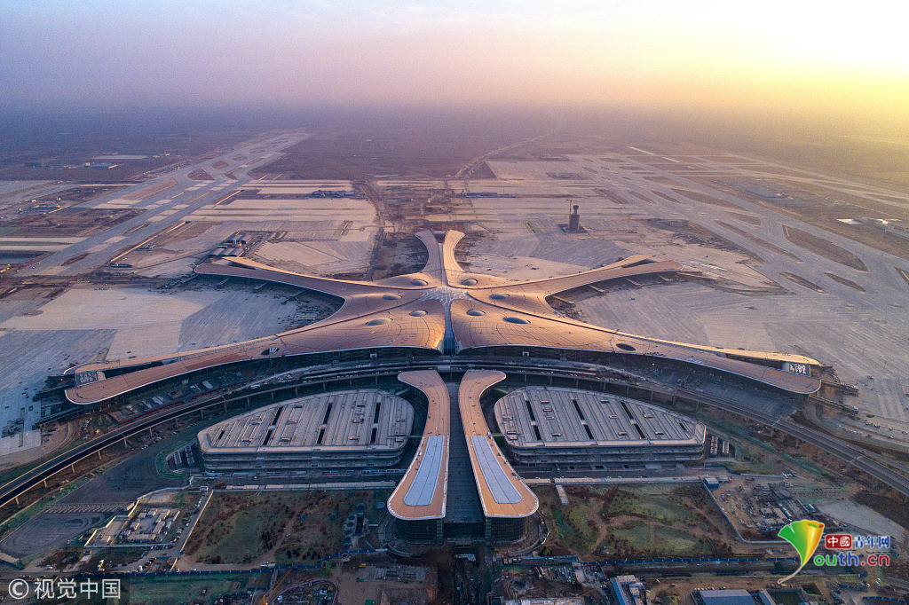 2018年12月19日,北京大興國際機(jī)場航站樓的屋面已基本完工,一只金色“鳳凰”完整地出現(xiàn)在北京城南。視覺中國