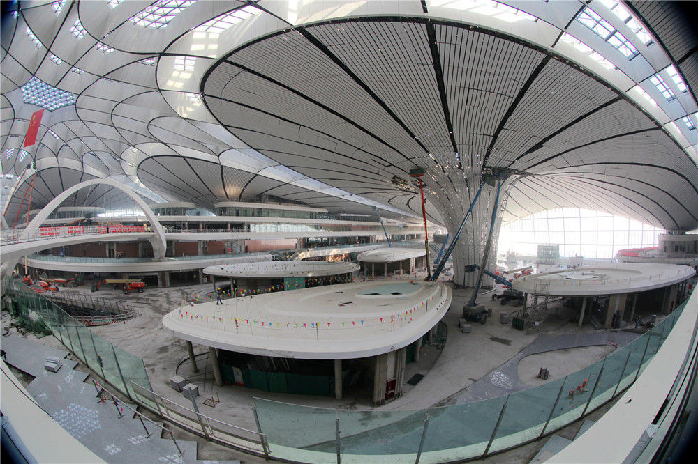 2019年5月24日,北京,新機(jī)場建設(shè)距離竣工時(shí)間還有37天,工程進(jìn)入倒計(jì)時(shí)。機(jī)場開建至今不到5年時(shí)間,機(jī)場施工工程將于6月底竣工,將于9月底投入運(yùn)營,該機(jī)場有望成為世界上規(guī)模最大的機(jī)場之一。任振朝/千龍圖像/視覺中國