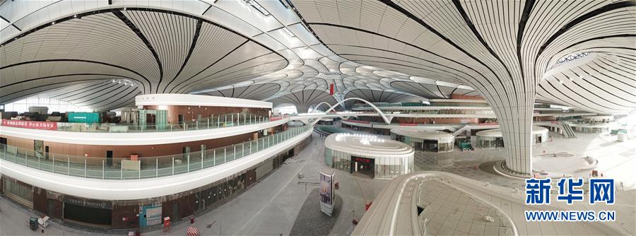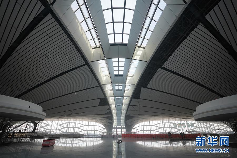 2019年4月26日,北京大興國際機(jī)場將于9月底正式通航。工程建設(shè)進(jìn)入總攻階段,目前,航站樓內(nèi)部裝飾進(jìn)行收尾的工作。武輝/千龍圖像/視覺中國