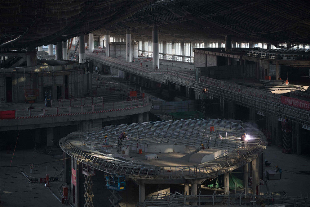 2019年1月20日,北京,探訪北京大興國際機(jī)場航站樓,建設(shè)工地正在如火如荼地有條不紊地建設(shè)之中。丁幫學(xué)/千龍圖像/視覺中國