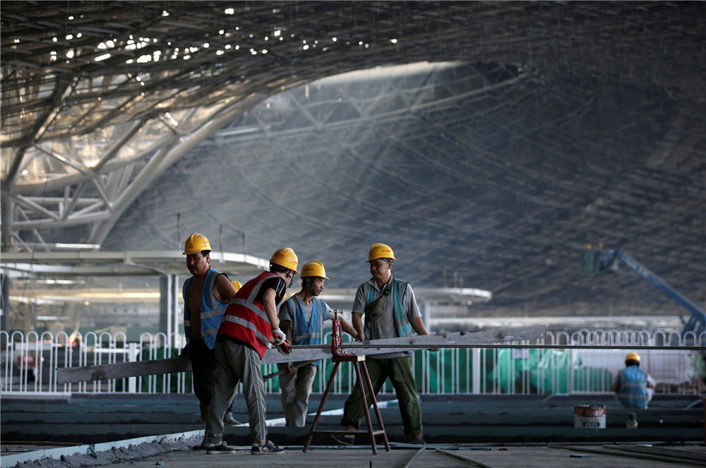 2018年8月30日,北京,北京市政府組織媒體參觀在建的大興國際機(jī)場。JASON LEE/視覺中國