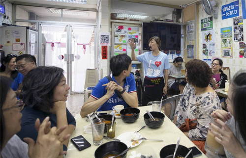 2019年10月10日,食客在李凱瑚位于香港九龍的茶餐廳里聚集,為她加油。51歲的李凱瑚是土生土長的香港人,她多次參加撐警集會,并在社交媒體上表態(tài)支持警察。遭到騷擾和恐嚇 但李凱瑚繼續(xù)勇敢支持警察,向市民發(fā)出號召,反對暴力。一些香港市民、內(nèi)地游客專程來到李凱瑚的茶餐廳,為她加油打氣,表達對香港的美好祝愿。新華社記者盧燁攝