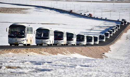 2019年12月23日拍攝的西藏那曲市雙湖縣牧民的遷徙車隊(duì)。西藏那曲市雙湖縣嘎措鄉(xiāng)、措折羌瑪鄉(xiāng)、雅曲鄉(xiāng)共2900人,告別了平均海拔5000米的家鄉(xiāng),經(jīng)過近千公里搬遷到海拔相對(duì)較低的藏南雅魯藏布江南岸的貢嘎縣境內(nèi)。這是西藏自治區(qū)近年來實(shí)施的極高海拔生態(tài)搬遷項(xiàng)目之一,雙湖縣三個(gè)鄉(xiāng)的整體搬遷是其中人數(shù)最多、跨度最遠(yuǎn)的一次搬遷。新華社記者覺果攝