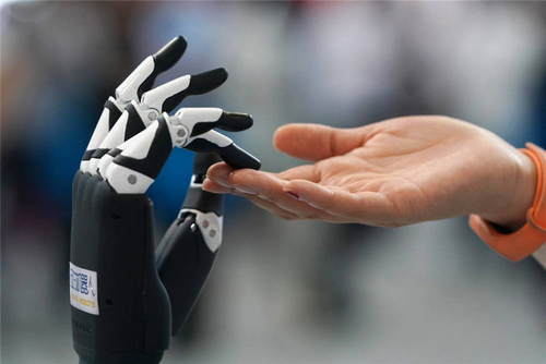 2019年6月13日,全國大眾創(chuàng)業(yè)萬眾創(chuàng)新活動周——北京會場主題展在中關(guān)村國家自主創(chuàng)新示范區(qū)展示中心開幕。這是一位參展商在演示展出的機(jī)器人產(chǎn)品。新華社記者鞠煥宗攝