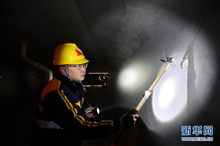 1月3日,中國鐵路濟南局臨沂工務(wù)段工程技術(shù)員畢雨佳在沂河特大橋箱梁內(nèi)檢查。新華社記者 朱崢攝