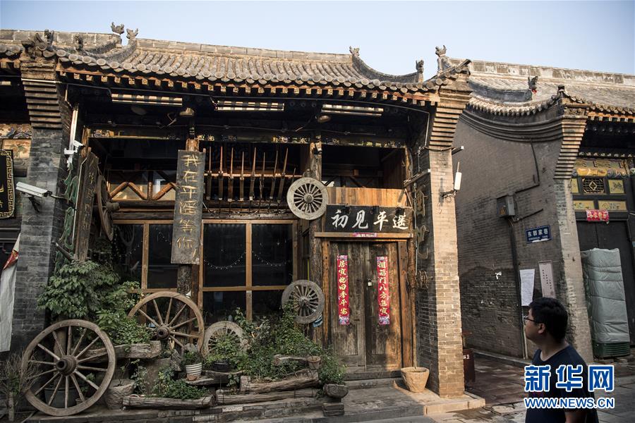 7月20日,游人在平遙古城區(qū)參觀。