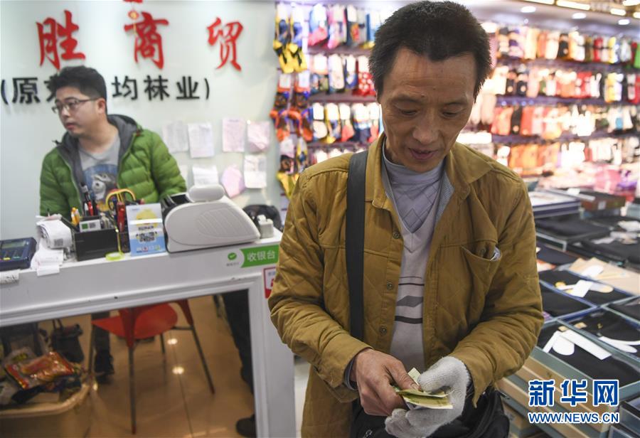 完成一筆搬運業(yè)務后,冉光輝清點自己的勞務費(1月5日攝)。新華社記者王全超攝