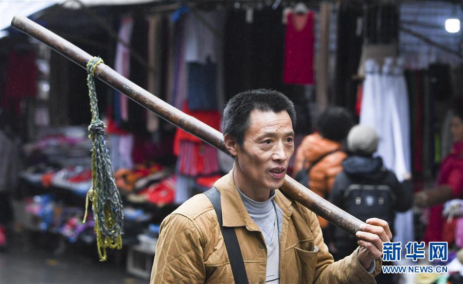 冉光輝在重慶朝天門一帶尋找搬運業(yè)務(1月5日攝)。新華社記者王全超攝