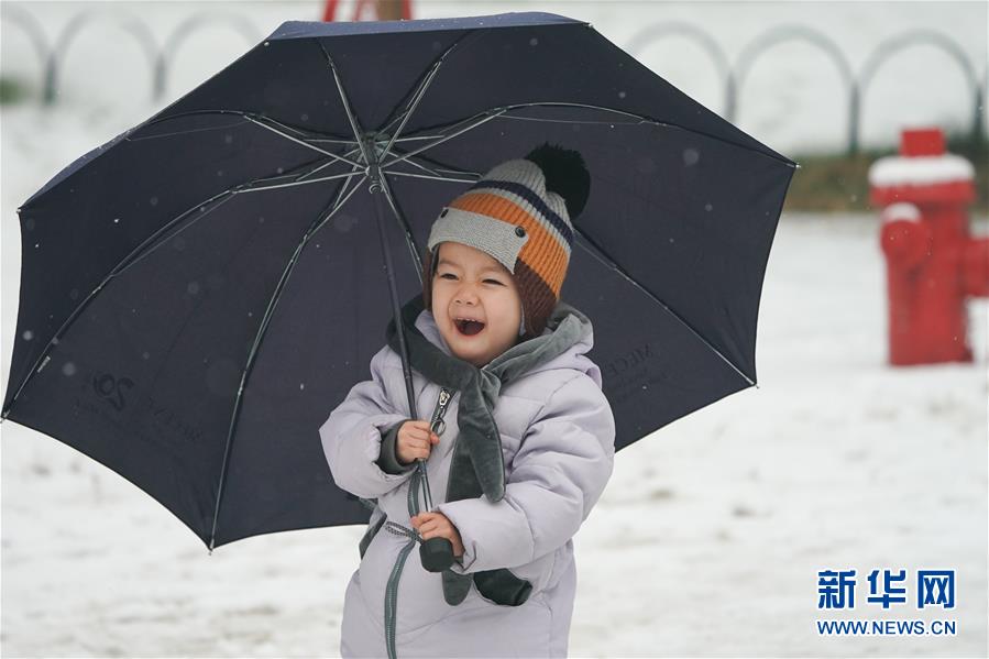 12月16日,在北京天壇公園,一名小朋友撐傘玩耍。當(dāng)日,北京迎來降雪天氣。新華社記者鞠煥宗攝