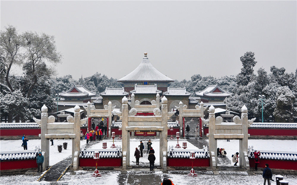 2019年11月30日,北京,初雪過后,天壇公園銀裝素裹,白雪古建相互映襯,景色迷人。時(shí)永平/千龍圖像/視覺中國