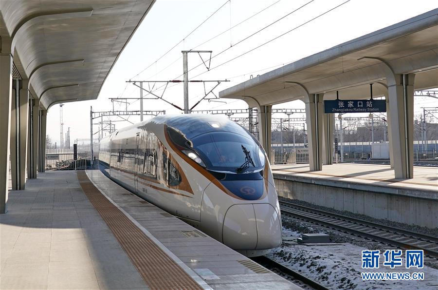 2019年12月30日,G2505次列車駛?cè)刖埜哞F張家口站。 當日,北京至張家口高速鐵路開通運營,崇禮鐵路同步通車。 新華社記者 楊世堯 攝