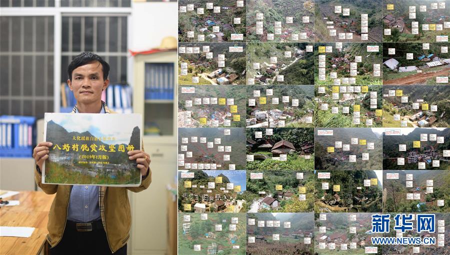 拼版照片:左圖為八好村駐村第一書記韋德王手持自己制作的“八好村脫貧攻堅圖冊”(2019年12月16日,新華社記者黃孝邦攝);右圖為“八好村脫貧攻堅圖冊”部分內容的拼版照片(資料照片,韋德王攝)。